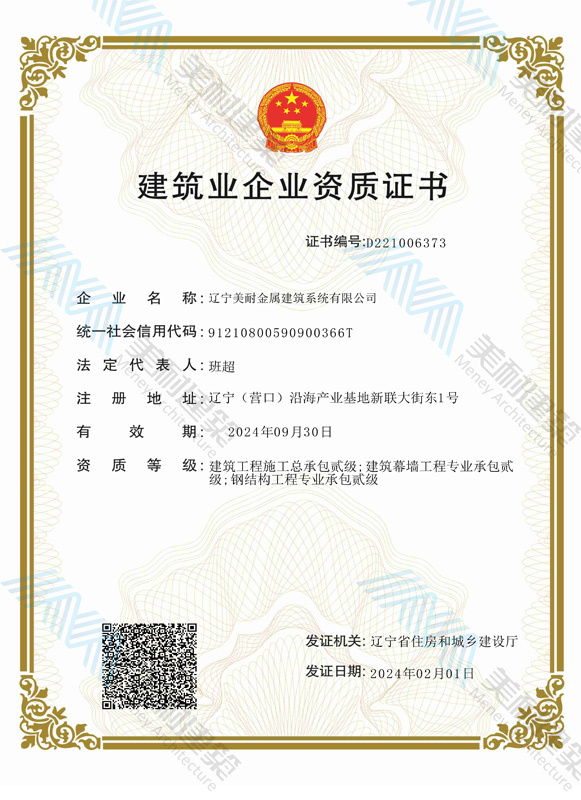 遼寧美耐金屬建筑系統(tǒng)有限公司位于遼寧(營(yíng)口)沿海產(chǎn)業(yè)基地,專注于預(yù)制金屬建筑系統(tǒng)領(lǐng)域,是一家集工業(yè)建筑設(shè)計(jì)、制作、施工及相關(guān)的技術(shù)咨詢與服務(wù)為一體的綜合性服務(wù)企業(yè)。作為國家鋼結(jié)構(gòu)協(xié)會(huì)會(huì)員、中國建筑金屬結(jié)構(gòu)協(xié)會(huì)會(huì)員單位與國家高新技術(shù)企業(yè),美耐建筑集建筑工程施工總承包、鋼結(jié)構(gòu)工程專業(yè)承包等多種資質(zhì)于一身,并擁有22項(xiàng)鋼結(jié)構(gòu)建筑領(lǐng)域?qū)@?項(xiàng)軟件著作權(quán)。